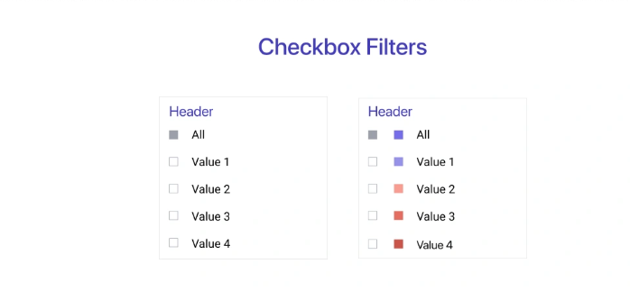 Checkboxes are ideal when users need to select multiple options simultaneously, for example, filtering for “North America AND Europe.” They make multi-dimensional filtering clear and help users compare multiple values.