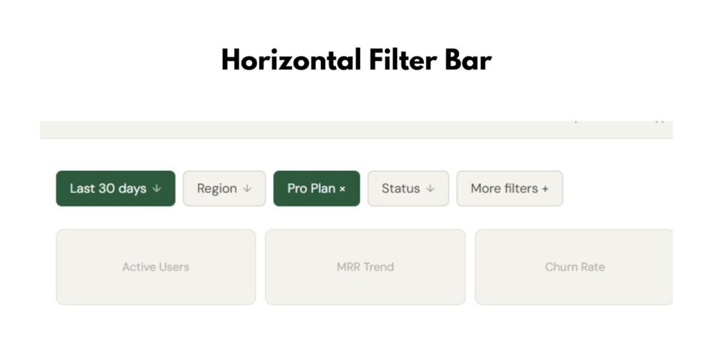 Horizontal filter bars are clean, but they break when there are more than 6–8 filters. Hiding extra options in a “More” dropdown usually doesn’t help because users rarely click it.
