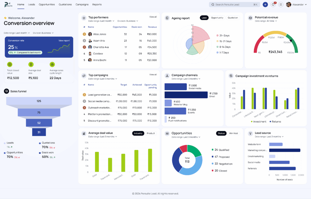 The dashboard handled multiple data layers such as lead stages, campaign performance, targets, and team activities. The challenge was to ensure users could quickly move from high-level insights to specific answers without friction.
