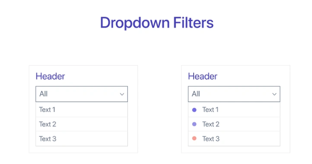 Dropdowns are the most common dashboard filter design pattern. They save space while handling long lists of options, like regions, categories, or user roles.