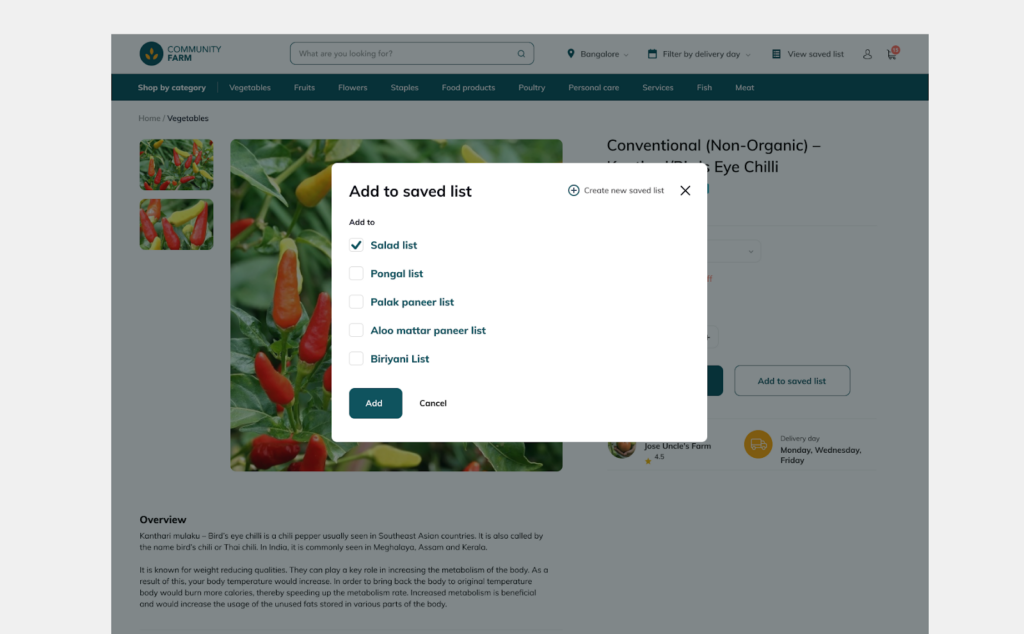 Community Farm has a different delivery model. Contrary to common e-commerce platforms where deliveries are made daily, Community Farm follows a pre-scheduled delivery date for different locations. Converting this unique delivery schedule to users while addressing their concerns and ensuring their satisfaction was challenging for us.