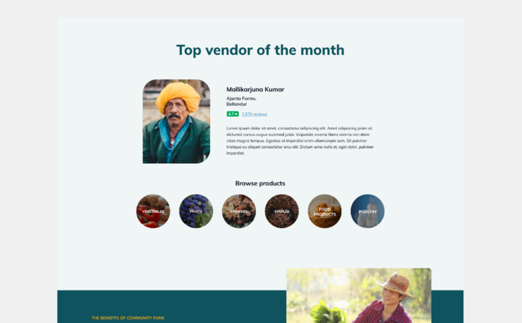 To support the website's credibility and reinforce user trust, we designed a section that promotes the vendors. See the image given below which shows a section “ Top vendor of the month”. It was intended to build a human connection that would make the platform memorable for users.