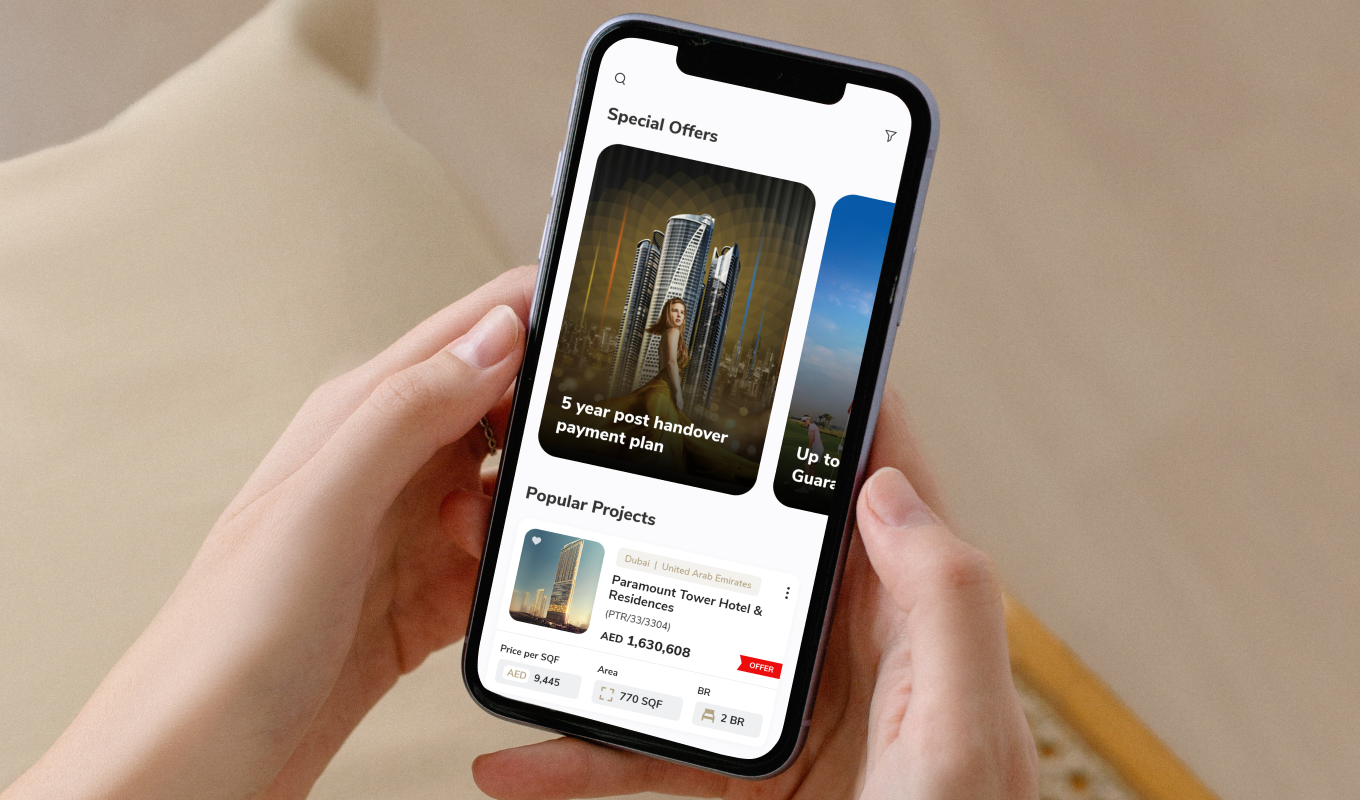Keeping in mind the usage context of the Agents app, a key challenge we addressed was to make the app easily usable for a person while he carries out a conversation with potential clients. The agents should be able to quickly scan through the app, find relevant project information in real-time, and get all details regarding each project, from images to plans, facilities, offers, and more. Executing this user journey in design was an exciting challenge.